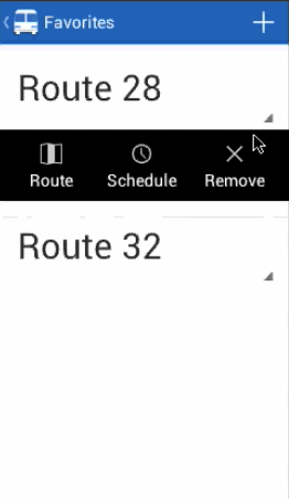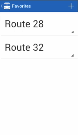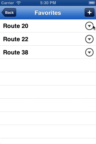 After the new navigation pattern was implemented, I proposed the creation of the favorites feature. Since the main use of the app would be to view the bus schedule or a specific bus route, I thought it would be a good idea if users were able to favorite their most used routes in order to quickly access scheduling and route information. This proposal was approved and I was assigned the task of designing and implementing the feature, which was completed in July of 2012.