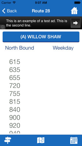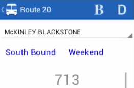 In the image above, you will see a B and D on the top right side of the bus schedule feature. When browsing arrival times, a user would press the “B” in order to change bounds whereas they would press the “D” in order to change the day type, i.e. weekday or weekends.