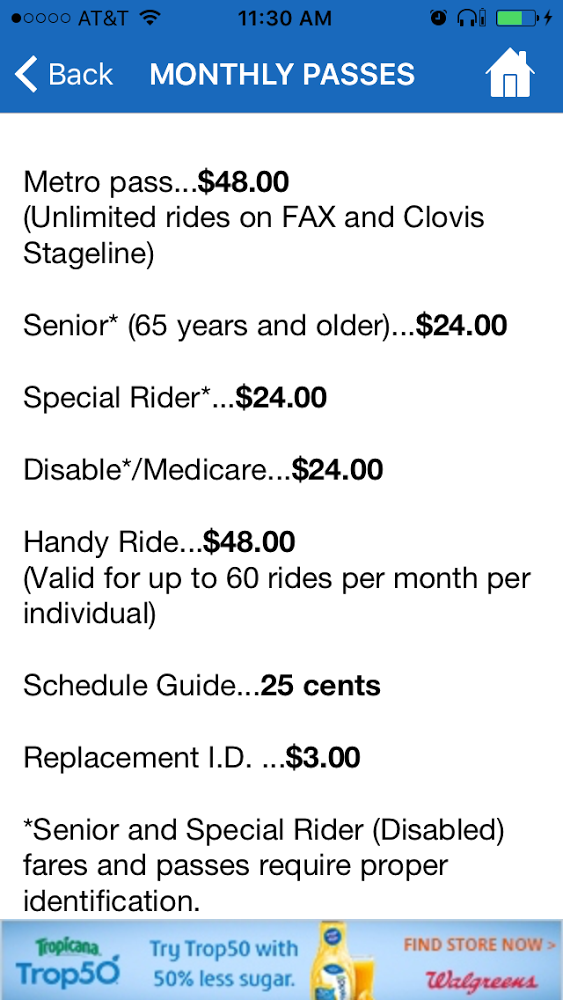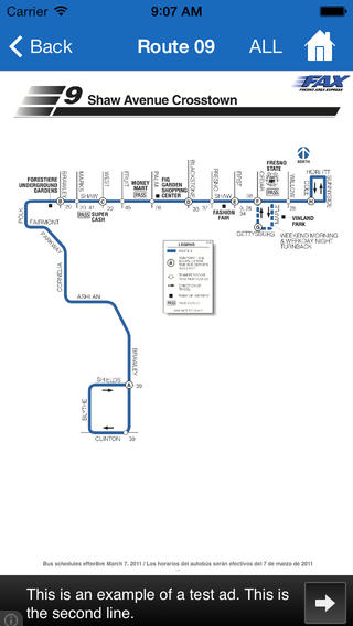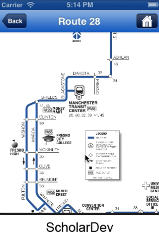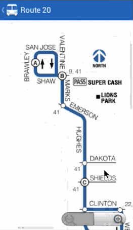 Since the core audience had been changed to all bus riders in Fresno, the Display Routes feature was changed so that it would display visual depictions of each route that FAX serves. In each image, the user would be able to see a route’s stops and corresponding streets. We used the same images that were available on FAX’s website. (this would eventually be approved by FAX)