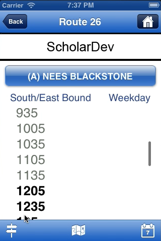 In the beginning of 2013, we started to have people try out the app and see what they thought of it. One criticism that was brought to our attention was how the action items for the bus schedule feature were unclear.