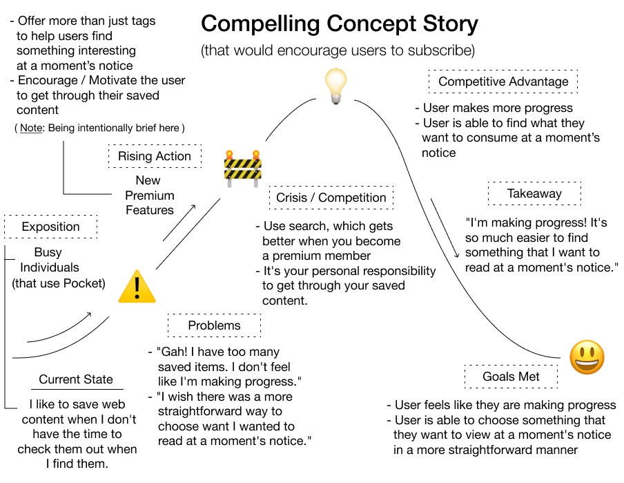 Since I had been a long-time user of Pocket, I started by drafting up its original concept story. I then dug into its backstory in order to make sure that everything was correct.