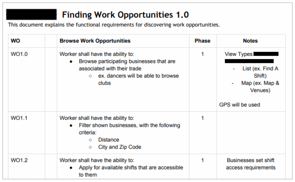 After getting some time to get up-to-speed with the project, I was directed to first create requirements documents based on the app’s outlined specifications. Since there was some abstract / general wording in the specs, these requirements documents finalized what needed to be designed and developed.
