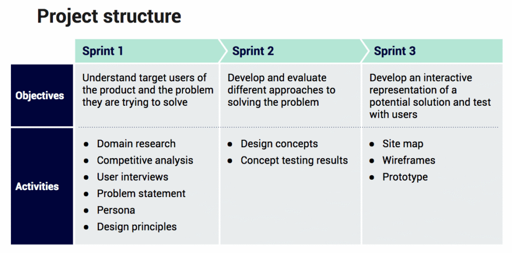 During the project’s kickoff, we outlined our user-centered design process and planned project structure to the client.
