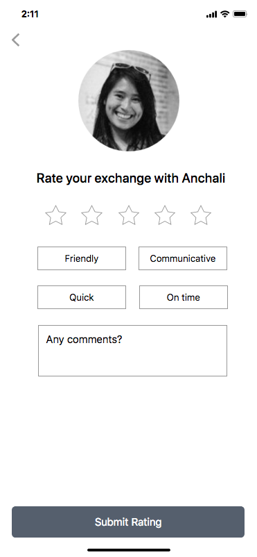 During each of the four usability testing sessions, we would switch up who was the interviewer and notetaker. Dorothy was the interviewer for the first two whereas I was the interviewer for the remaining three (includes the rating screen). We made small additions to what we tested as we went along.