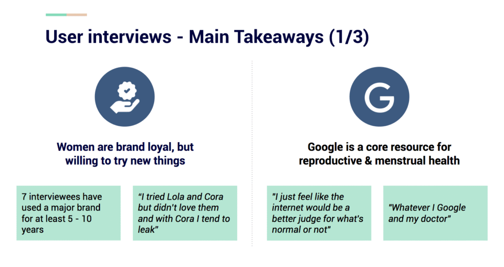 One of the first things we started off with after planning our research was doing an analysis of what’s going on in this domain. Besides focusing on where women get information when trying to answer menstrual health questions, we also eyed (1) what was trending, (2) the sustainability side of period products, (3) the new purchasing options women have for these types of periods, and (4) the topic of period equity.